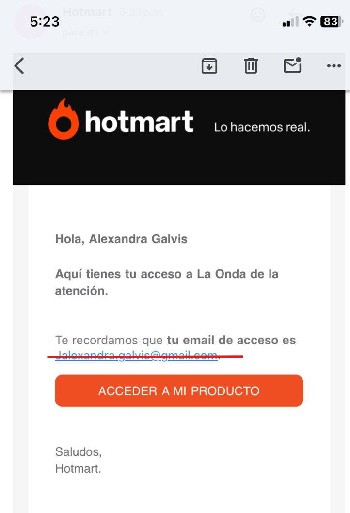 Una vez hagas la compra recibirás inmediatamente 2 correos. El primero contendrá la factura electrónica de la compra y el segundo tendrá las credenciales para establecer la contraseña en la plataforma donde tendrás acceso al la onda de la atención.